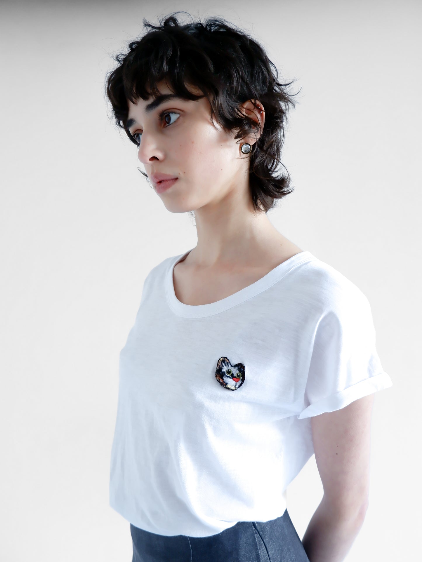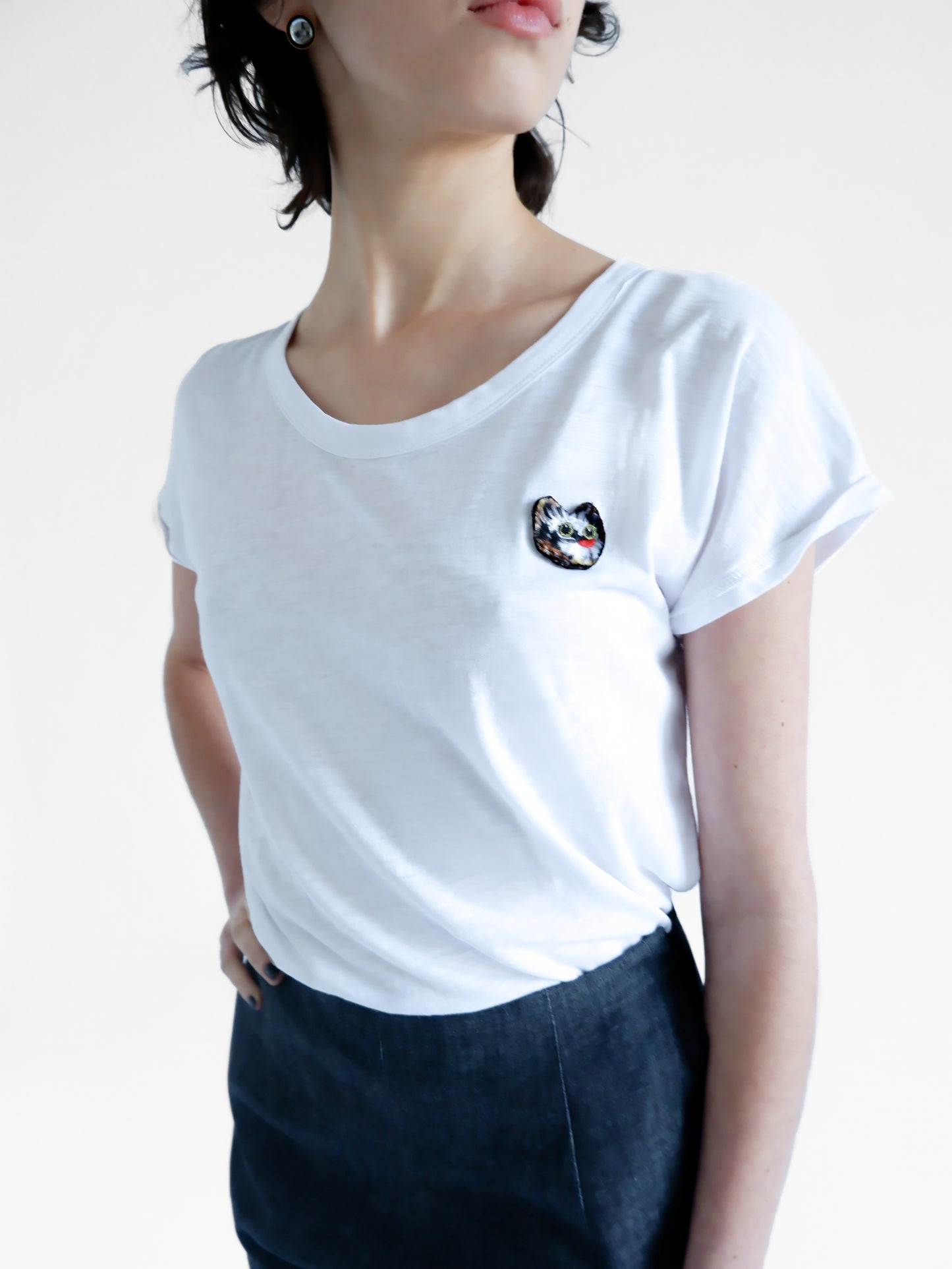 T-SHIRT BLANC CHAT