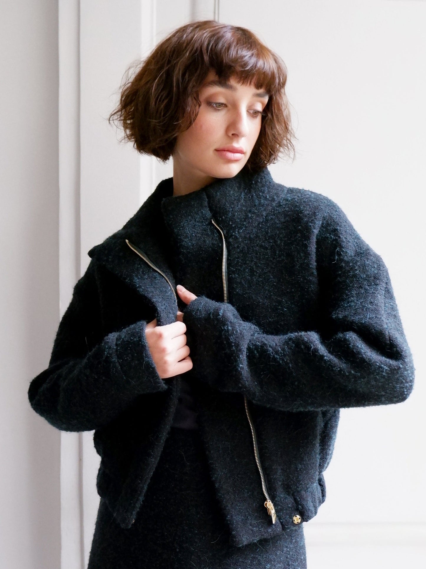 アンバリによるファブリックの代表作であるアンジェレケープは、時代を超越したエレガンスと現代的な洗練の完璧なバランスを体現しています。上質な生地を使用し、襟と繊細なリボンタイのベルトがシルエットを際立たせています。流れるようなカットと丁寧な仕上げが特徴で、このケープは現代的なワードローブに欠かせないアイテムです。洗練された印象がありながらも、毎日気軽にお召しいただける一着です。